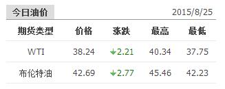 2015年8月25日国际原油价格表