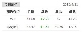 2015年9月21日国际原油价格表